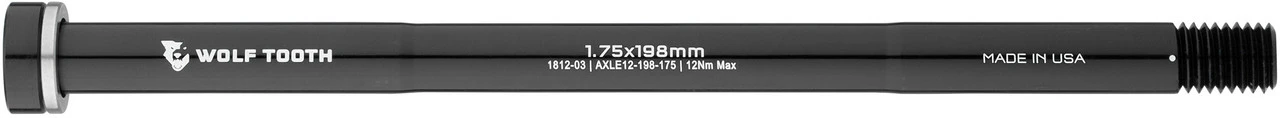 Achslänge:198 mmGewindesteigung:1,75Gewindelänge:17 mmHerstellernummer:AXLE12198175Lieferumfang:1 x Steckachse Wolf Tooth Components 12 mm